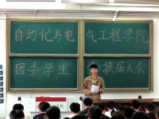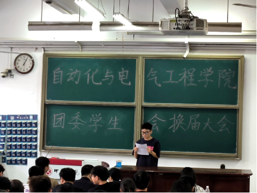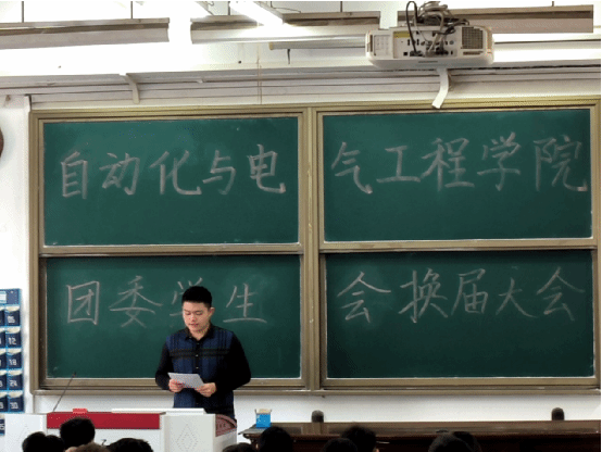 大会伊始,团委副书记赵恒锐、学生会主席乔鑫相继上台发言,对团委、学生会过去一年的工作进行了总结。接下来,团委负责人周老师充分肯定了团委学生会在过去一年取得的成果,向辛勤工作的全体成员表示感谢,表达了对大家的信任与期许,并向下一届学生会成员提出了新的要求。