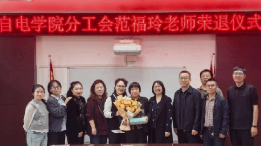 分工会在10号楼218会议室举行范福玲老师荣休仪式。仪式由党委书记张颖主持,学院领导班子、离退休处处长郭亚红、荣休教师、分工会委员、教师代表参加。