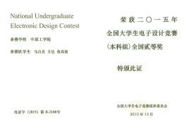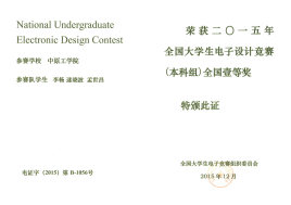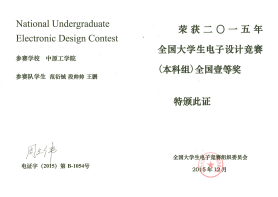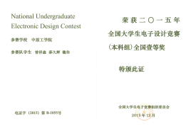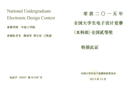 2015年度全国电子设计大赛获奖证书