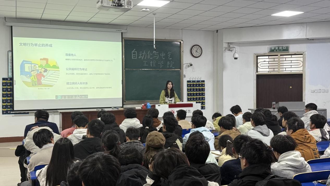 大会内容设计紧密贴合新生实际需求,将心理健康教育融入日常生活的具体场景。辅导员丁晴老师首先从“行为举止与自我形象”入手,阐述了文明礼仪不仅是个人素养的体现,更是营造和谐人际关系、减少人际摩擦、从而降低心理内耗的重要途径。随后,会议深入探讨了“兴趣爱好的心理滋养价值”,引导同学们认识到,在课业之余培养积极健康的兴趣爱好,是调节情绪、释放压力、获得成就感和归属感的有效方式,是维持心理平衡的重要支撑。会议还结合常见适应性问题,分享了时间管理、有效沟通及寻求支持的具体方法与资源。