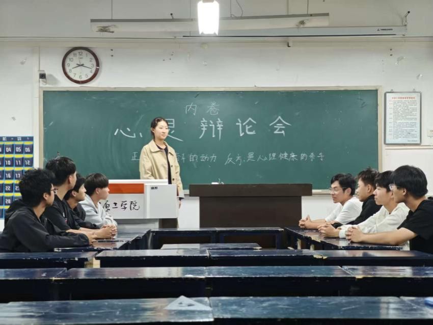 于11号教学楼503组织了一场别开生面的“心灵辩论会”。本次活动以大学生密切关注的“内卷”现象为切入点,围绕“内卷是心理健康的动力还是杀手”这一辩题,展开了一场兼具思辨深度与心灵温度的对话。